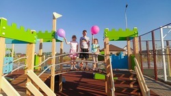 Здесь каждый ребёнок находит себе развлечение: одни катаются с горки, другие занимаются на тренажёрах; места хватает всем.